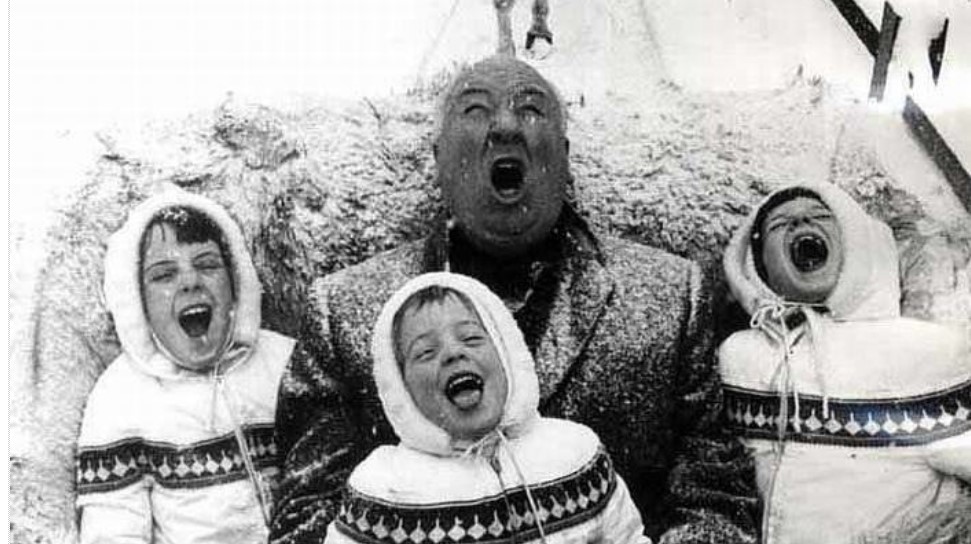 What an iconic photo featuring Director Alfred Hitchcock. |