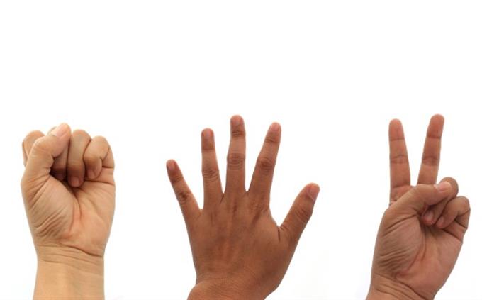 In competitive rock-paper-scissors, what do most men statistically throw first? A)