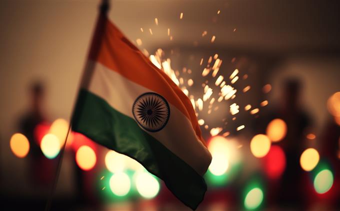 Fireworks and flags marked which year India celebrated independence from Britain?