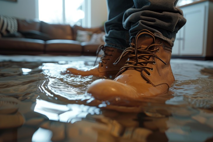 Extract any pooled water immediately using a wet/dry shop vacuum or pump. Larger water volumes may require renting a submersible pump. After eliminating the bulk of water, use mops and absorbent towels to address remaining wetness.